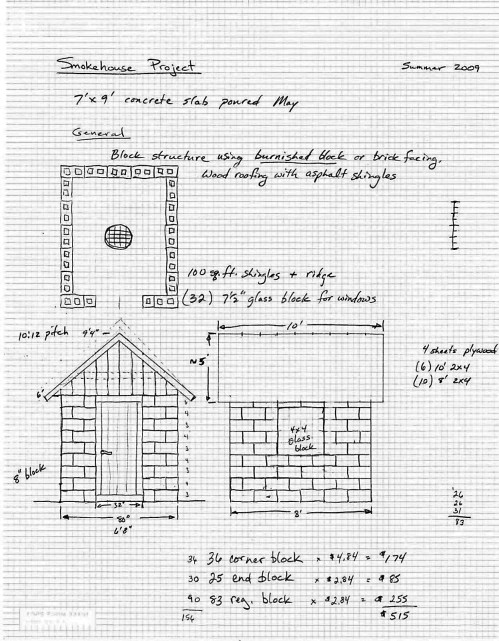 Jesse started talking about building a smokehouse soon after we bought the farm. He finally turned his vision into a reality last summer. After a lot of research and sketches, he came up with a design.
