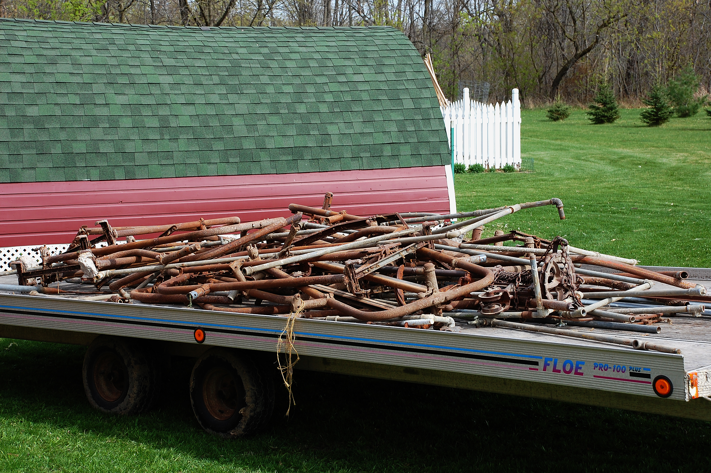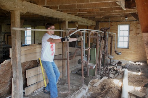 In celebration of our township’s cleanup day this year, we decided to resume the barn project and tear out the cattle stanchions and miscellaneous piping to haul in for scrap metal disposal.