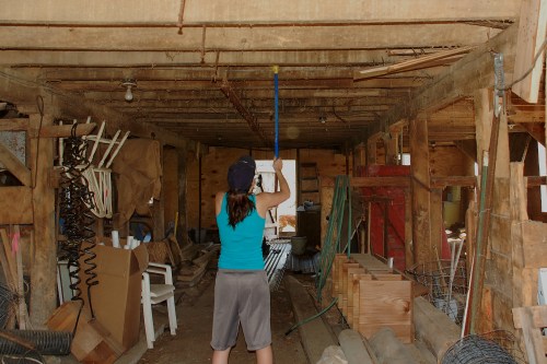 Inspired by the progress we made on the barn over the weekend, my sweet daughter decided to get a broom and start sweeping down the cobwebs from the ceiling.