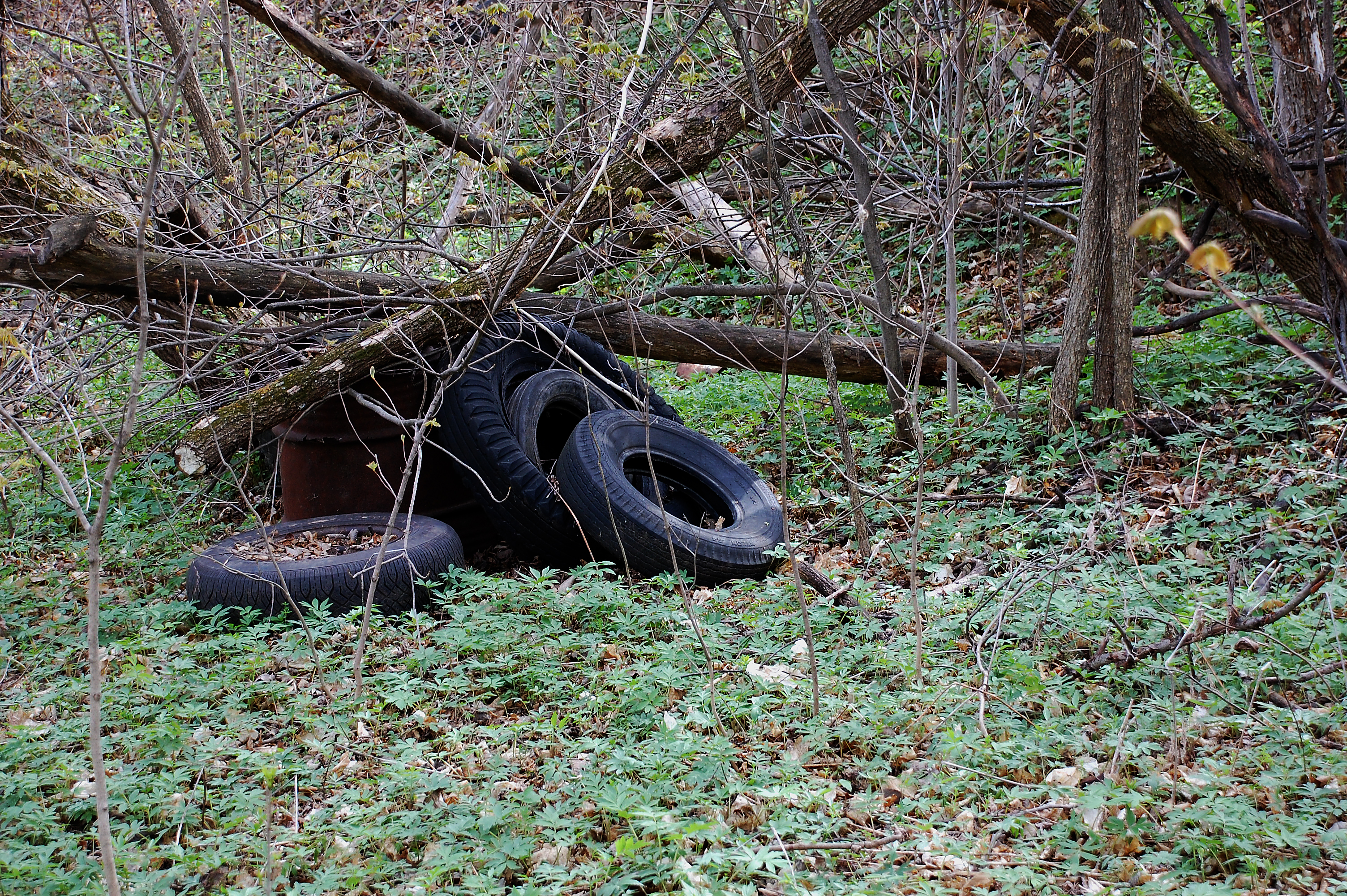 Along with our scrap metal, we will also be bringing in our limit of old tires (4).  The practice on the working farm was apparently to throw everything that would not burn over the river bank behind the barn.