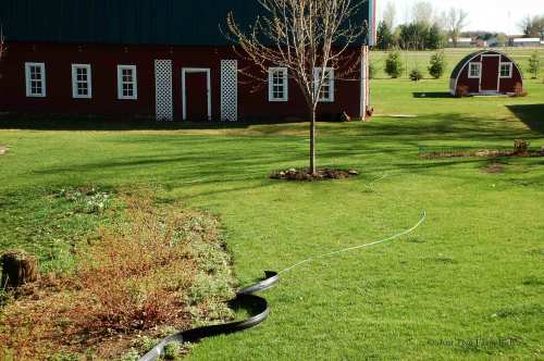 I liked the aesthetics of how the curve around the tree tied the new garden into my bed of peonies. I also want to eventually incorporate the fire pit into the garden with a patio area, but have not figured out that phase of the project yet. So for now, I just created a small strip of garden to define the curve.