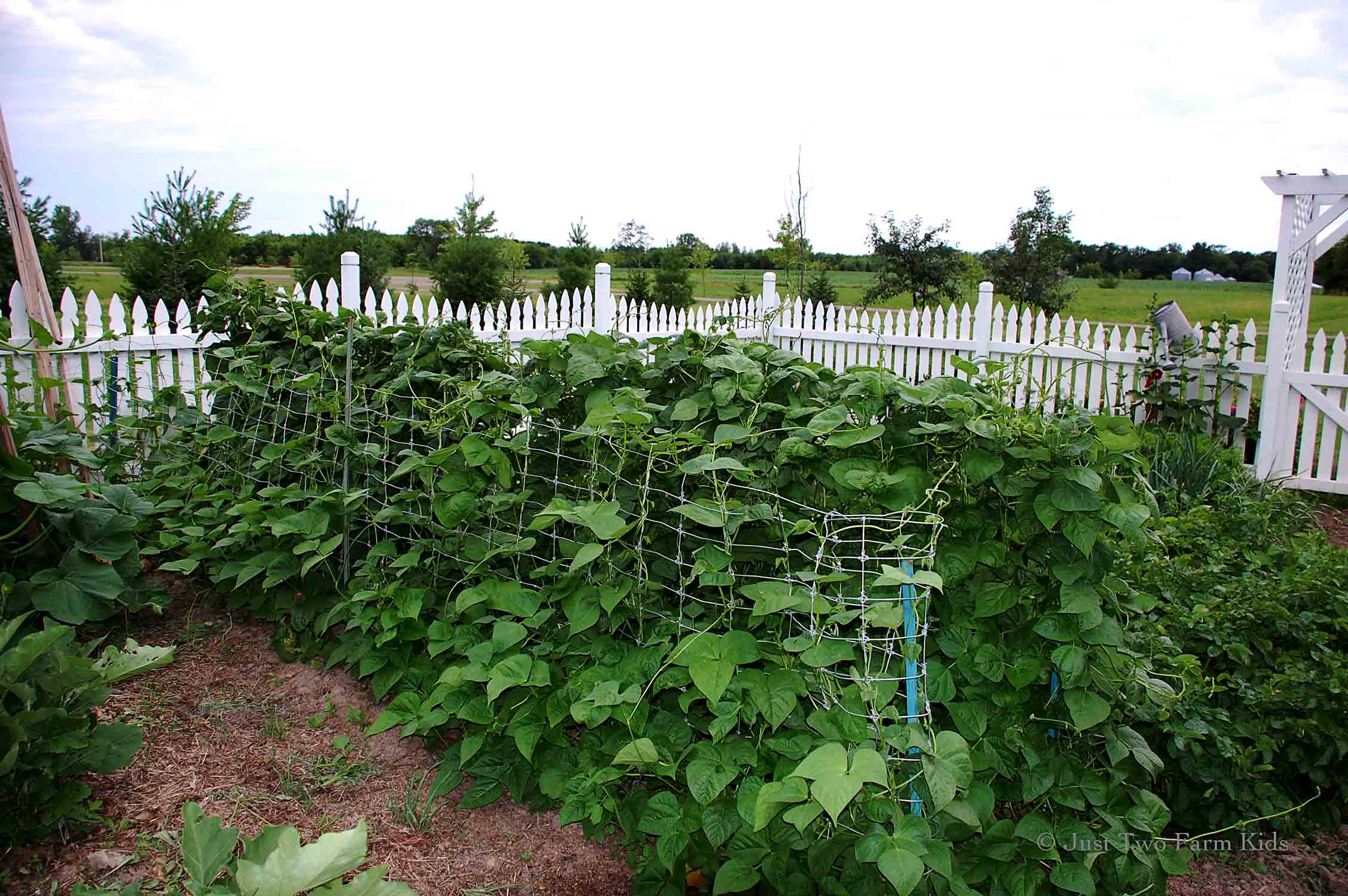 Aside from one row of bush beans, we planted pole beans this year. Our string bean crop last year suffered because it was a wet summer and the overgrown plants started molding underneath and rotting the beans. I am optimistic that the pole beans, with the increased air flow, will be heavy producers in a few weeks.