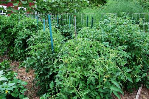 The tomatoes are strong and healthy and have set many tomatoes already. I am keeping my fingers crossed because it was around this time last year that some sort of blight set in and severely diminished my harvest.