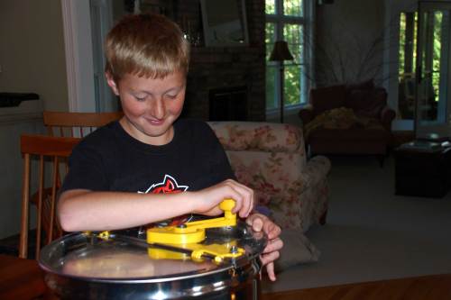 Earlier this spring, the boys successfully installed two packages of bees into the hives and we waited to see how the new bees would do. It was not long before we figured out that one of the hives was failing. The queen had not survived for some reason and no new brood was present. I installed a new queen to try to help them get established, but she also turned out to be an ineffective queen, mostly laying drones (the worthless males) instead of worker bees (the industrious females).