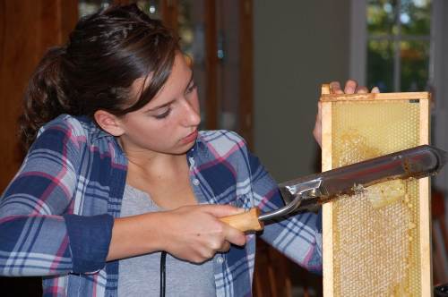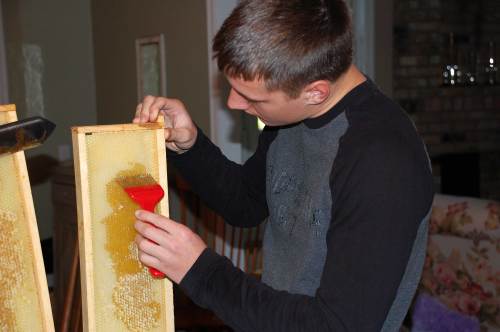 The first step was to shave off the wax cappings with the hot extracting knife.