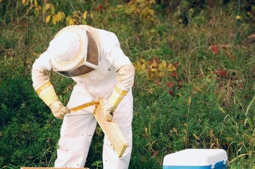 Our oldest would then brush off the remaining bees and place them in a cooler to keep the bees away.