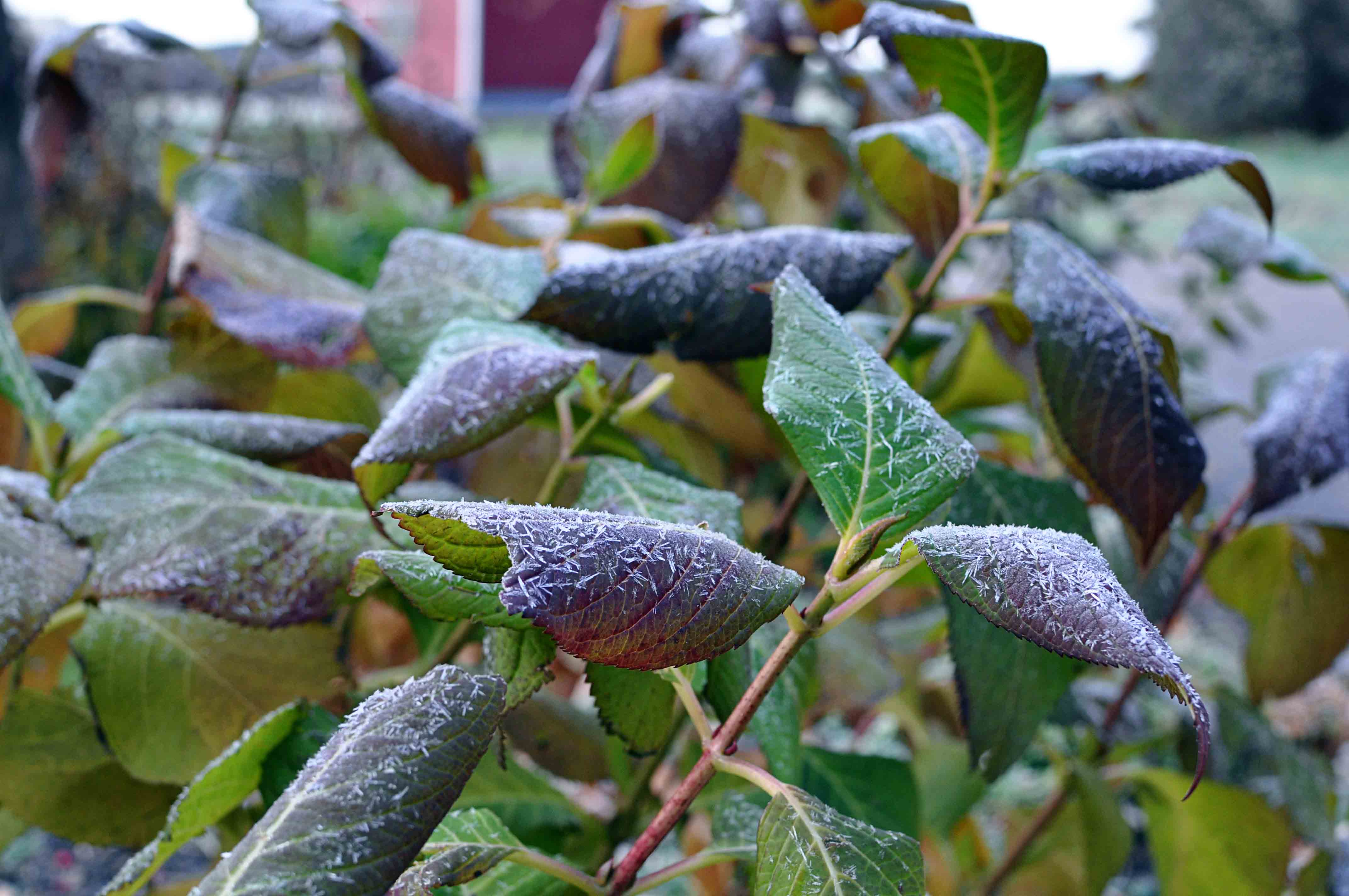The skies finally cleared and yesterday morning I woke up to find that we had gotten our first really hard frost of the season. I headed outdoors with my camera to take a look.