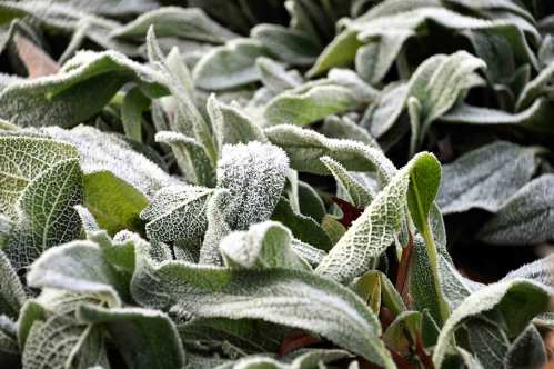 The frost adhered especially well to the soft leaves of the Lamb’s Ear plants.