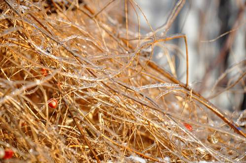 An ice storm last weekend, along with another shot yesterday, has left a layer of ice covering most everything.