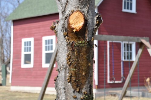 We also noticed the bees were out foraging. They seemed to like the sap leaking out of the maple trees that we pruned in late February.
