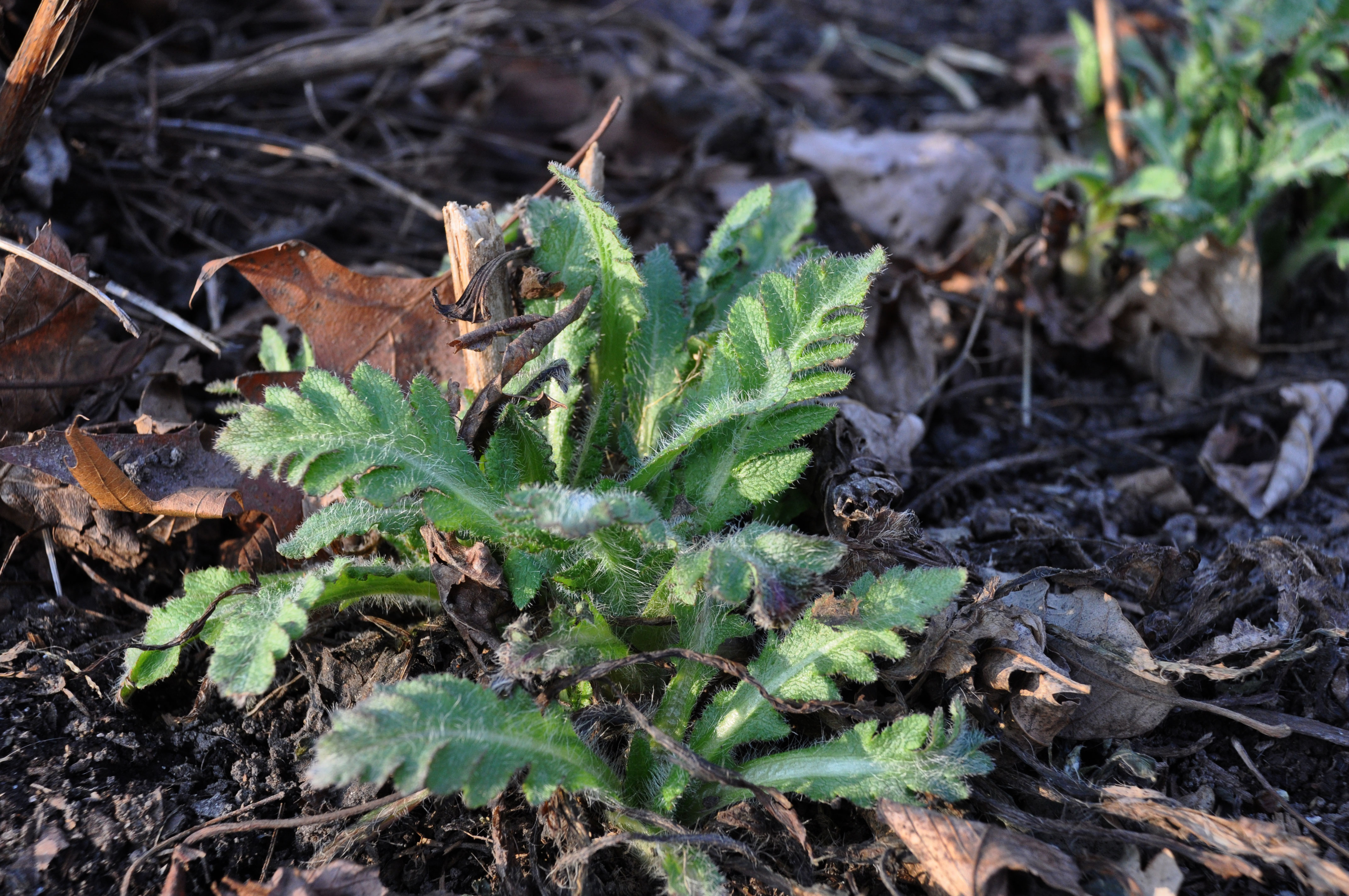 After a week of continuous March temperatures near or over 70F, we also noticed that my gardens are starting to wake up and spring to life. These poppies were hiding under the leaf mulch.