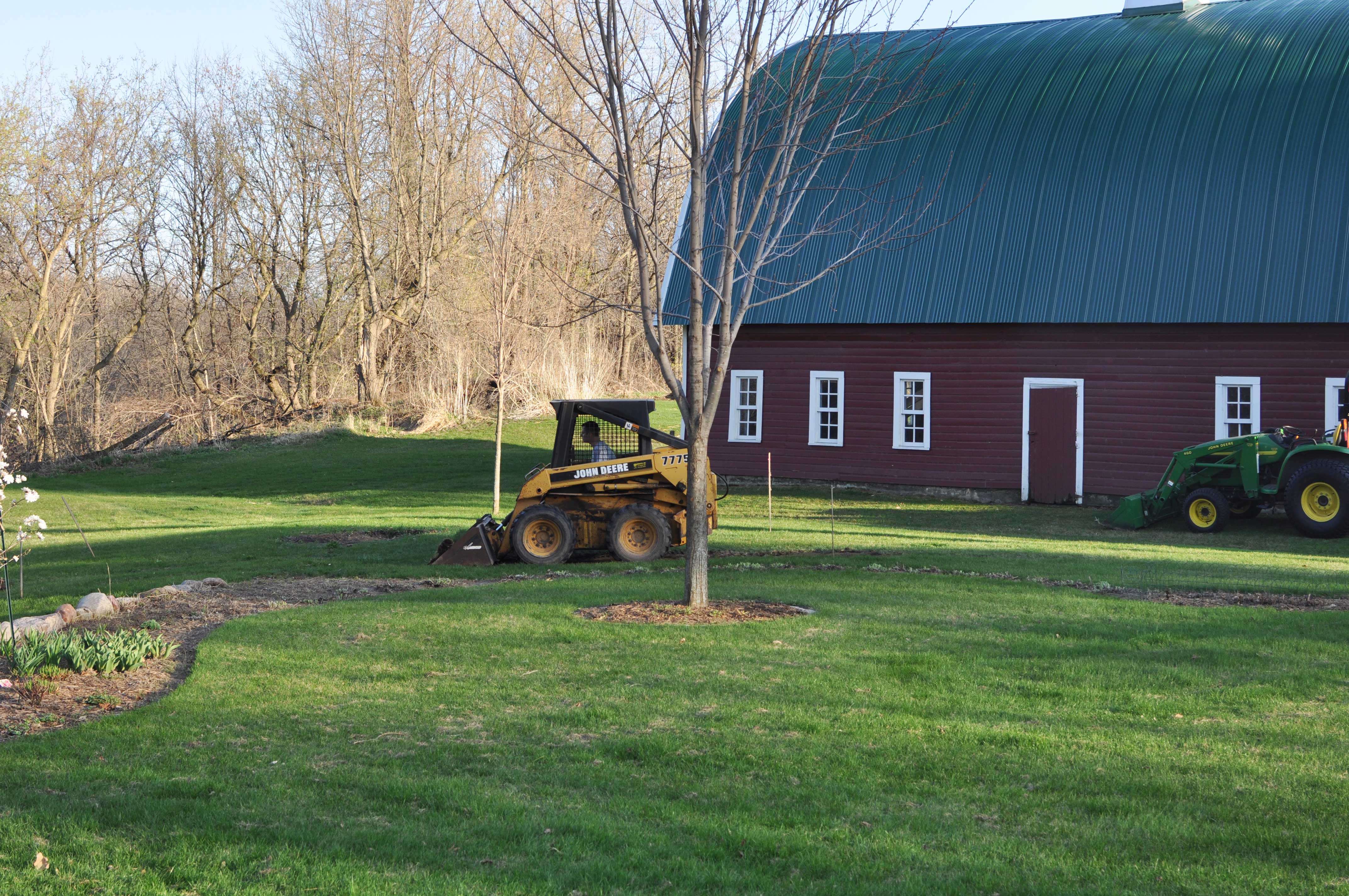 Boulders are on order and will be placed with the help of a little extra muscle. Notice that from beginning to end the trees have somehow managed to fully leaf out.