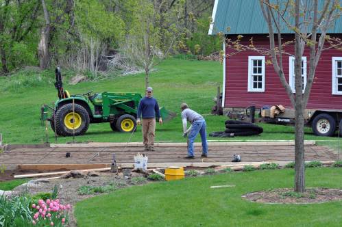We are constantly fixing, changing, and adding things here around the farm.  The big project that we wanted to tackle this spring was the addition of a free-standing patio and fire-pit area.  After a little brainstorming with my uncle over a design, we decided to get started.