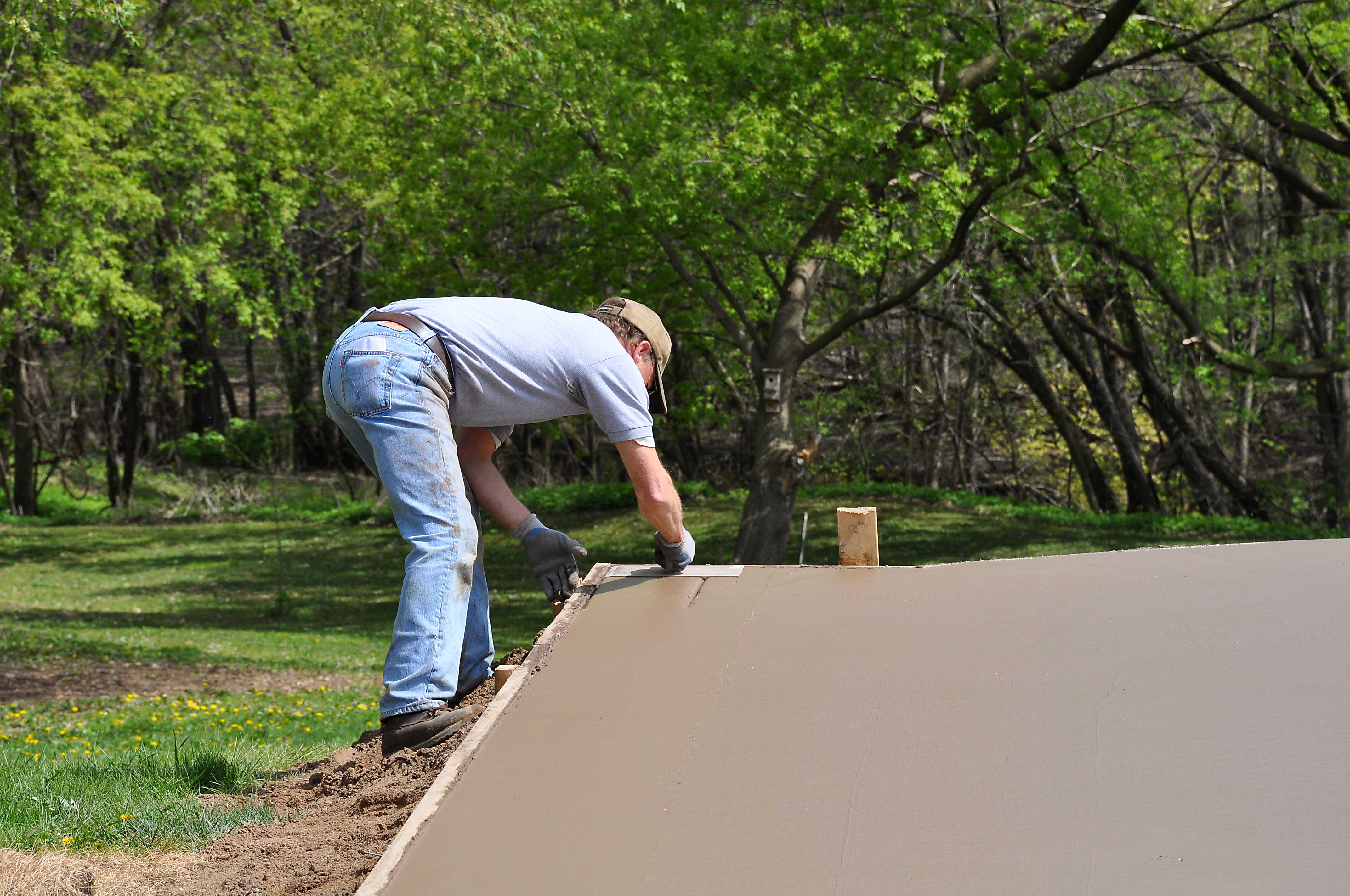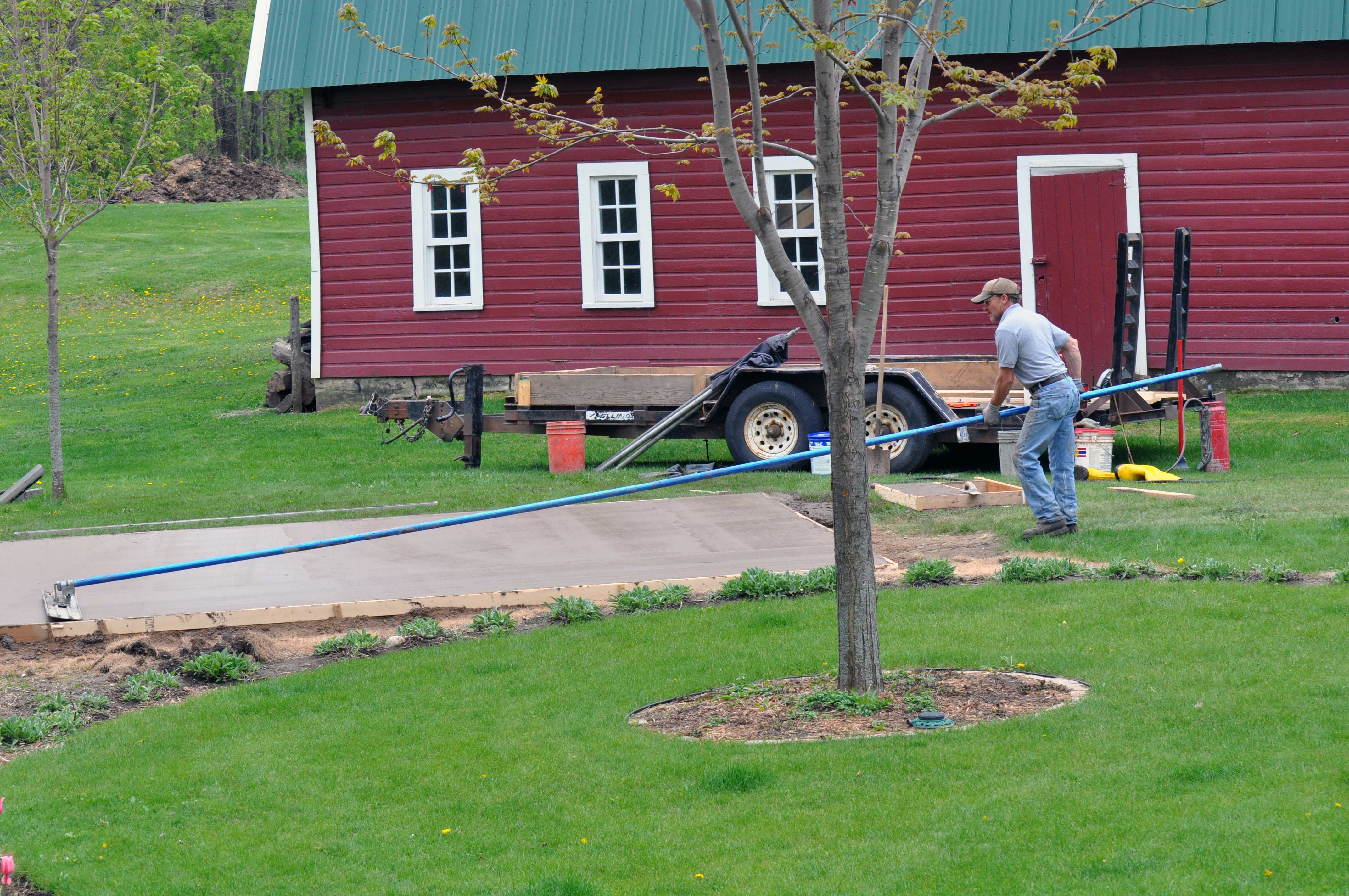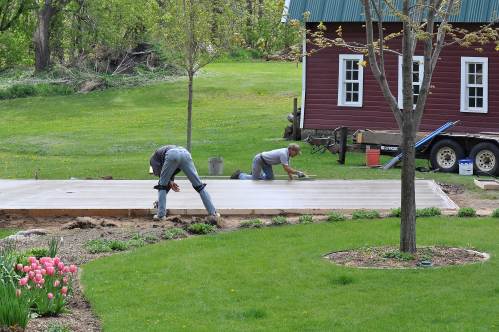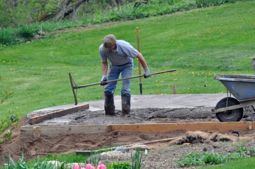 Once the concrete arrives, the hard work really begins.  I left that part to the professionals, but I did try to look busy the whole time. The concrete was poured and leveled.