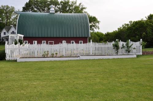 After much deliberation, I decided we would place them along the south side of the fence surrounding our vegetable garden.  In addition to the delicious fruit they produce, blueberry plants are attractive plants that have pretty white blossoms in the spring and glossy green leaves in the summer, which turn a lovely red in the fall.  Predicted to reach heights of 36″ – 48″, I am hoping that as the bushes grow taller, their presence will soften the appearance of the massive white fence.