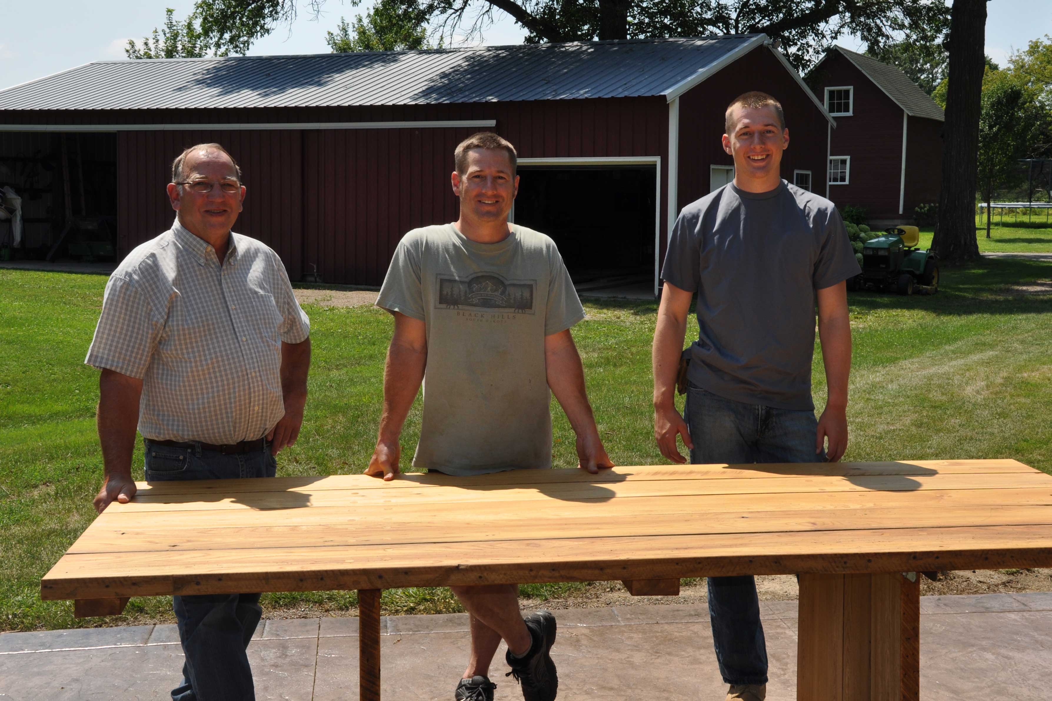 The guys were surprised how heavy the table was now that it was completely assembled. They turned the table over and stepped back to admire their handiwork. Things were looking pretty good.