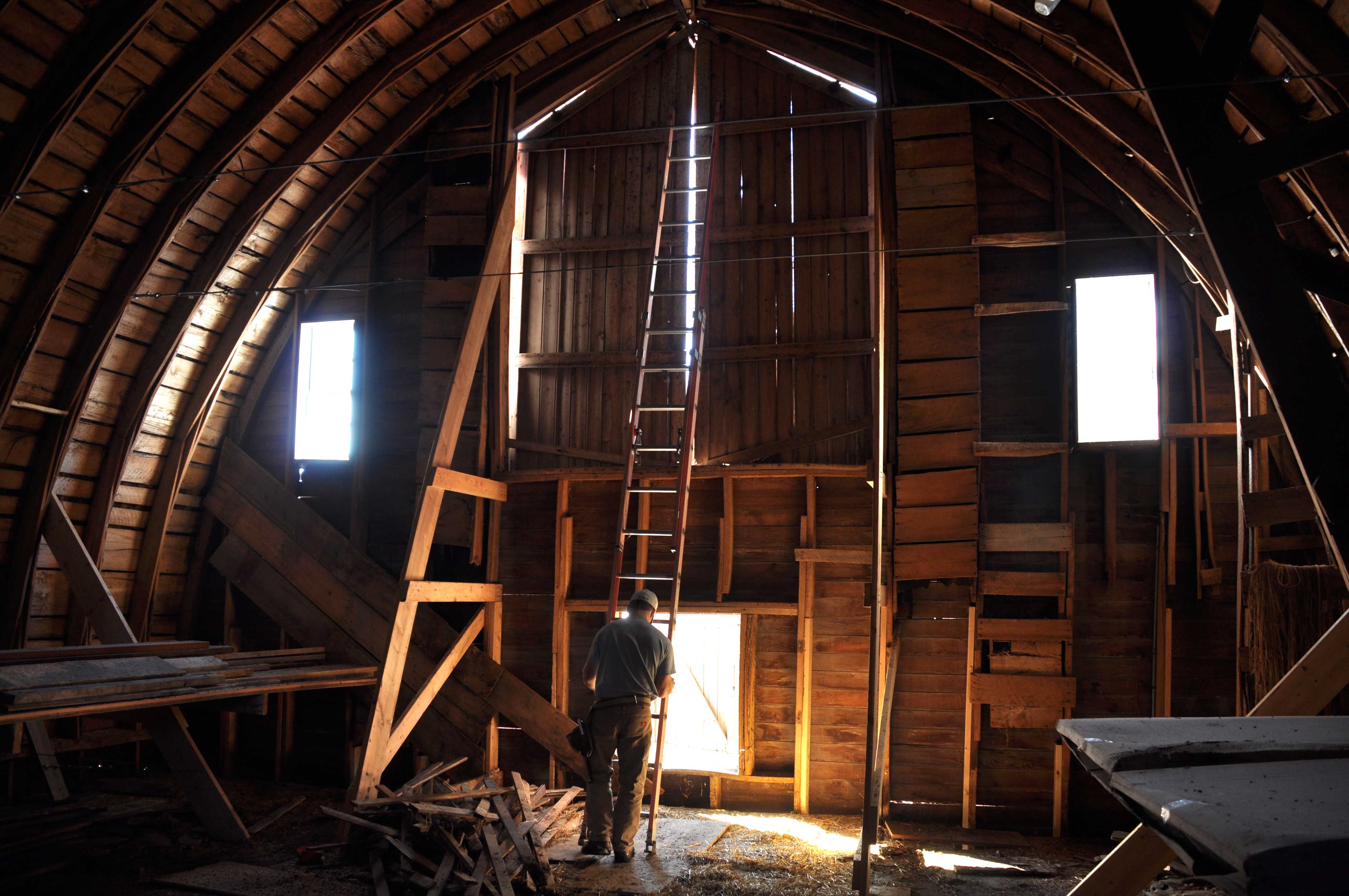 Here is the main entrance for the bats into the hayloft. You can see the heavy use around the hay-fork rail where they have worn off the paint from all the flights in and out.