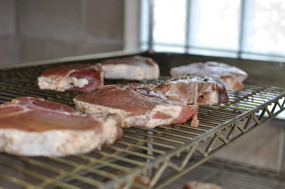 The sausage is hung in the smokehouse to dry overnight to form a pellicle. The pellicle refers to the tacky surface that develops when food is dried and to which the smoke sticks, thereby adding the desired smokey flavor.