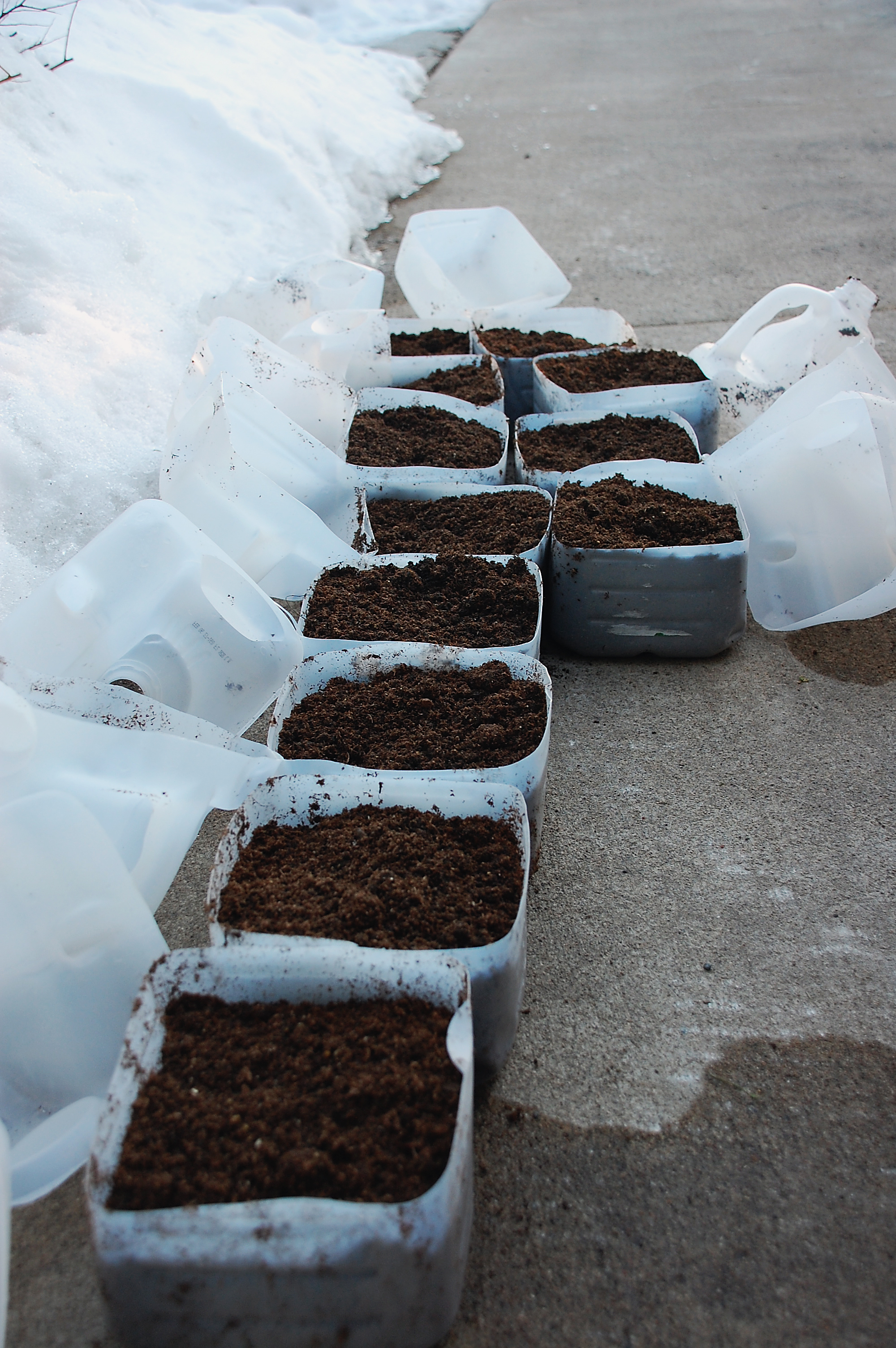 After purchasing potting soil, seed starter mix, seeds, and saving up some gallon milk jugs, I was ready to get the process started.
